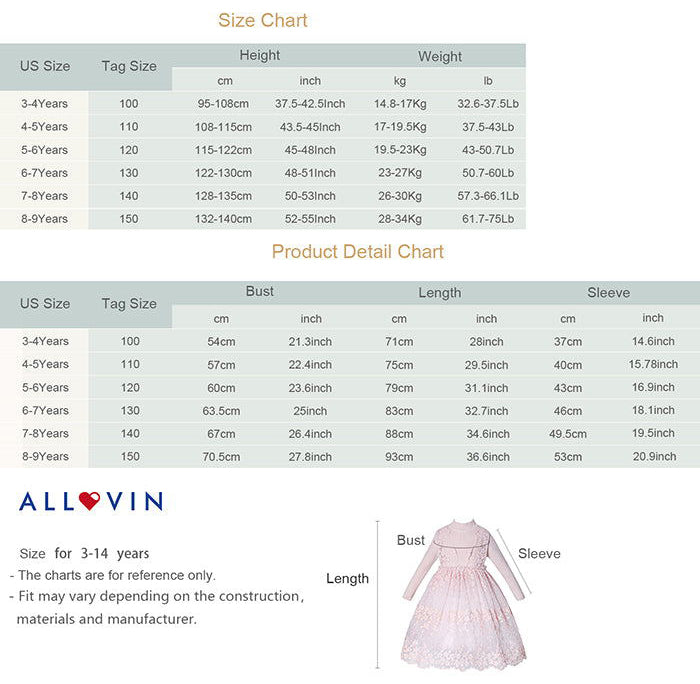 Allovin Junior Girl Long Sleeve Lace Sundress Decorated Knitted Sweater Tulle Dress