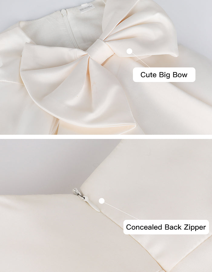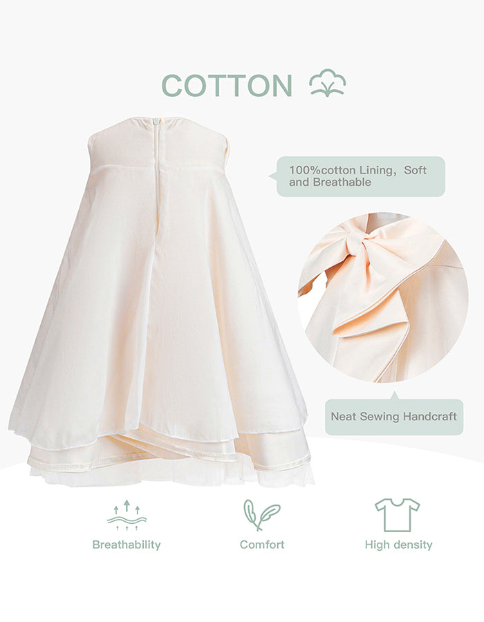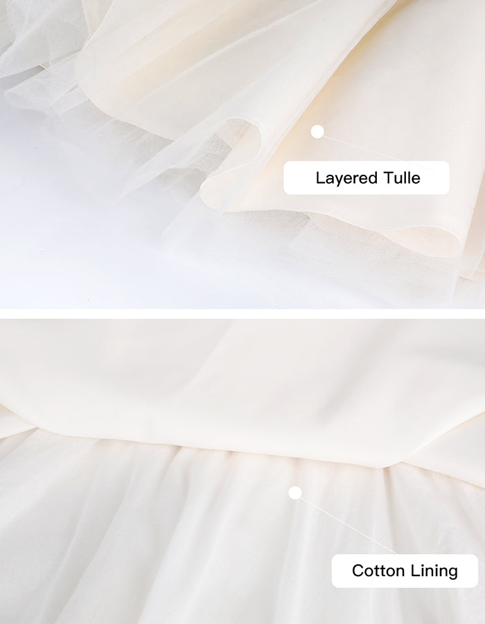 【Design】Featuring an A-line fit, a big bow decoration, layered tulle, and a hidden back zipper closure.