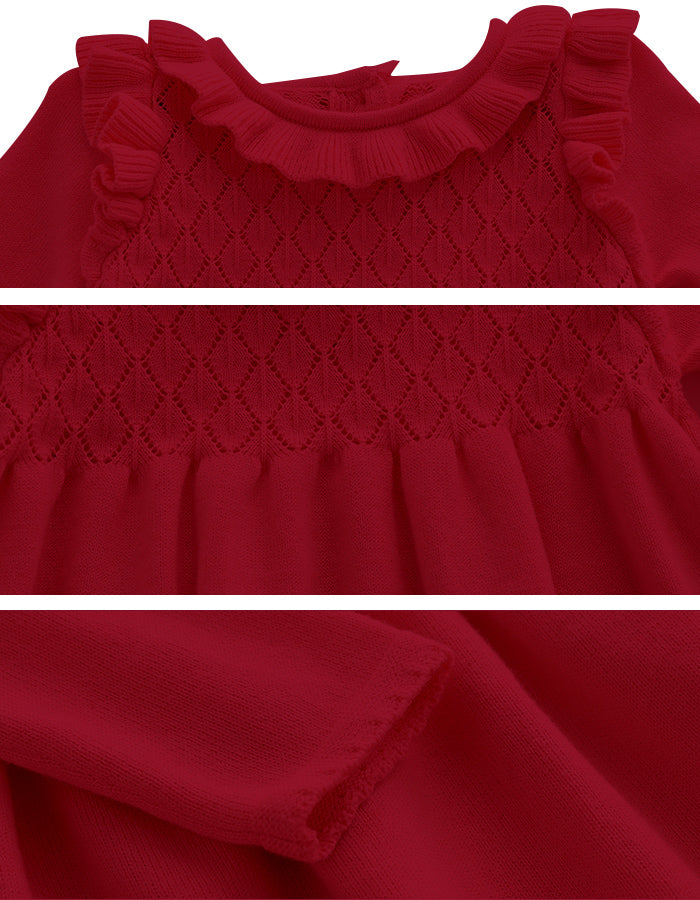 The perfect party-ready one-piece,Made from pure cotton,A wonderful textured cross-knit design on the top,Frill shoulders and collar