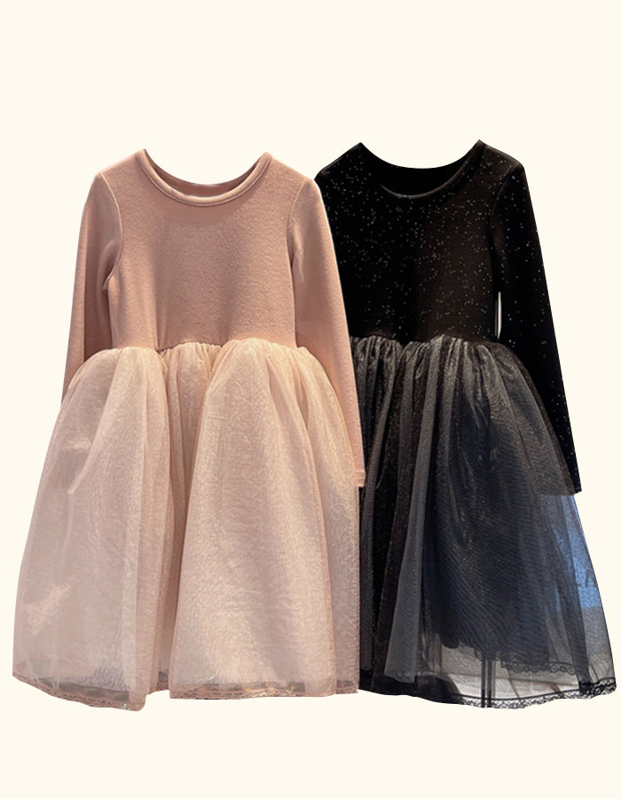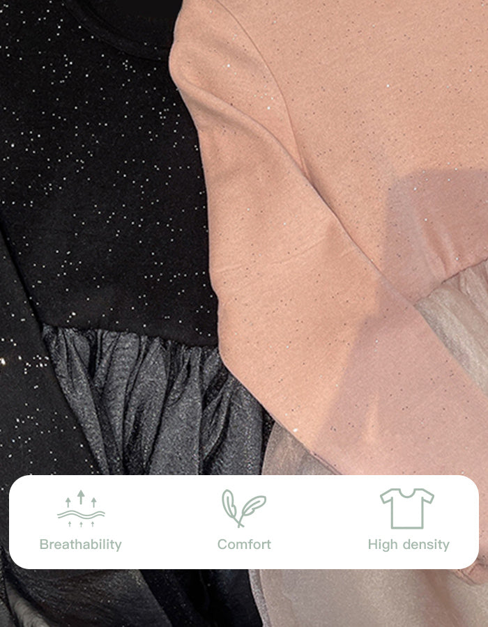 - 【Composition】 Shell: Cotton 95%, Spandex 5% Shell: Cotton 100% Tulle: Polyester 100%【Highlights】Midi Length Long sleeve Round Collar Composition【Season】 Spring, Autumn, Winter.【Washing】 Machine washable, low tumble dry.