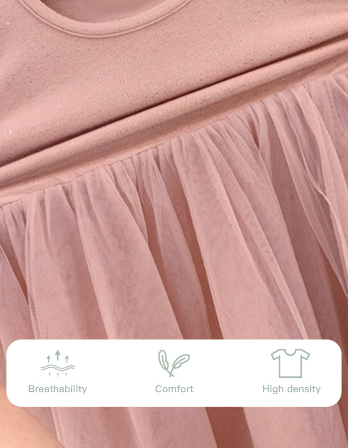 - 【Composition】 Shell: Cotton 95%, Spandex 5% Shell: Cotton 100% Tulle: Polyester 100%【Highlights】Midi Length Long sleeve Round Collar Composition【Season】 Spring, Autumn, Winter.【Washing】 Machine washable, low tumble dry.